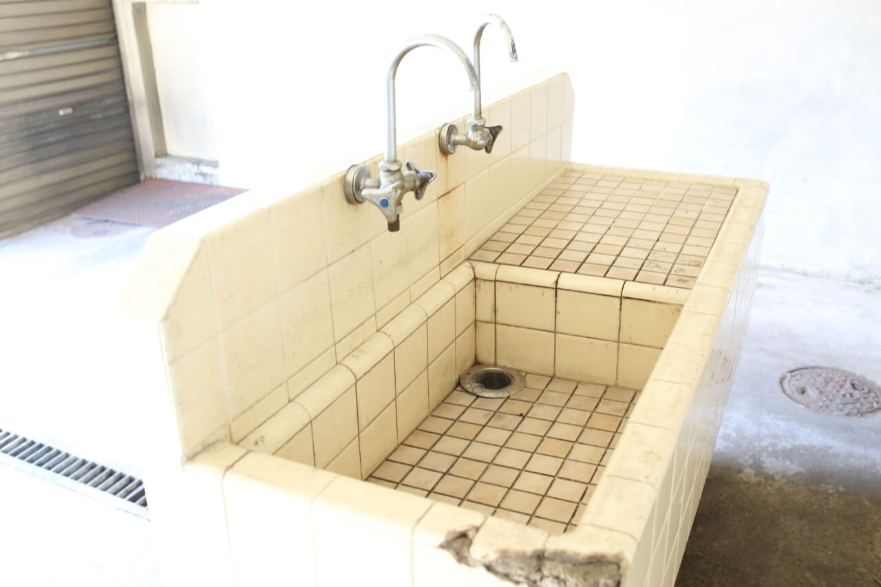 当時、新鮮な採れたて野菜の泥を落として販売するために、土間の中央奥には洗い場が設置されています。