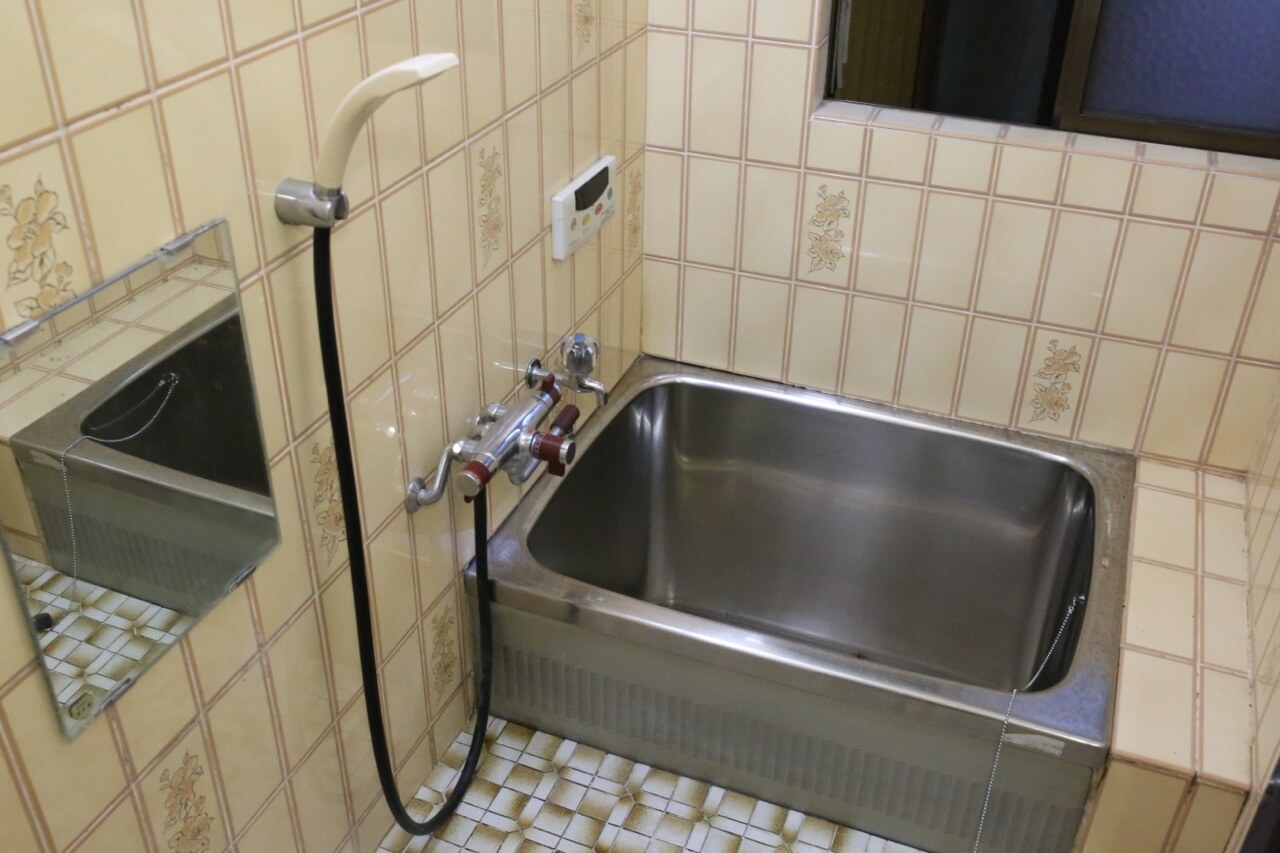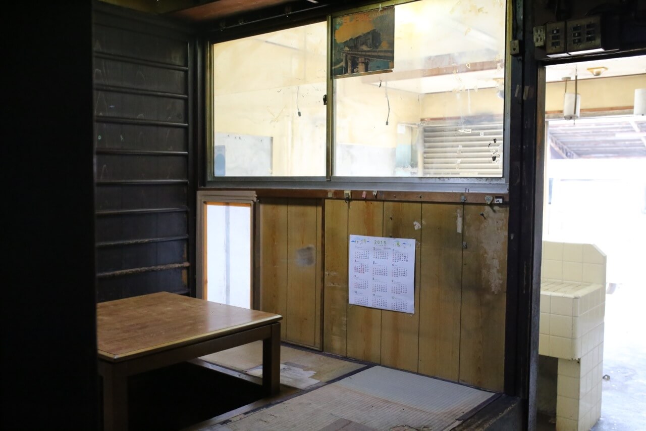 洗い場の後ろには、奥の居間と繋がる小窓があります。