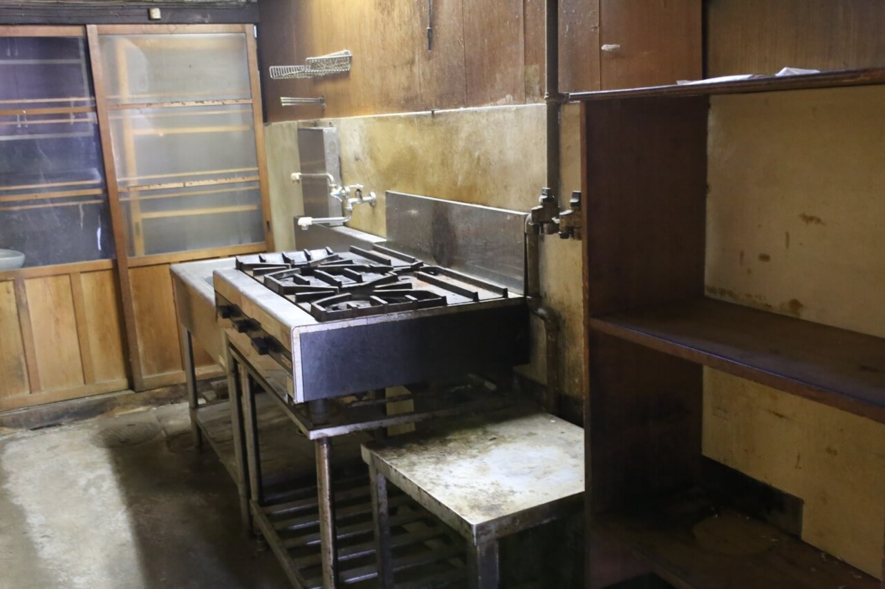 通り庭には台所もあり、昔ならではの業務用の大きなコンロがあります。