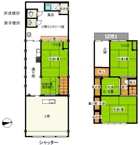 二階は6畳の和室が2つと、2.5畳の和室が1つあり、押し入れや床の間もあるため