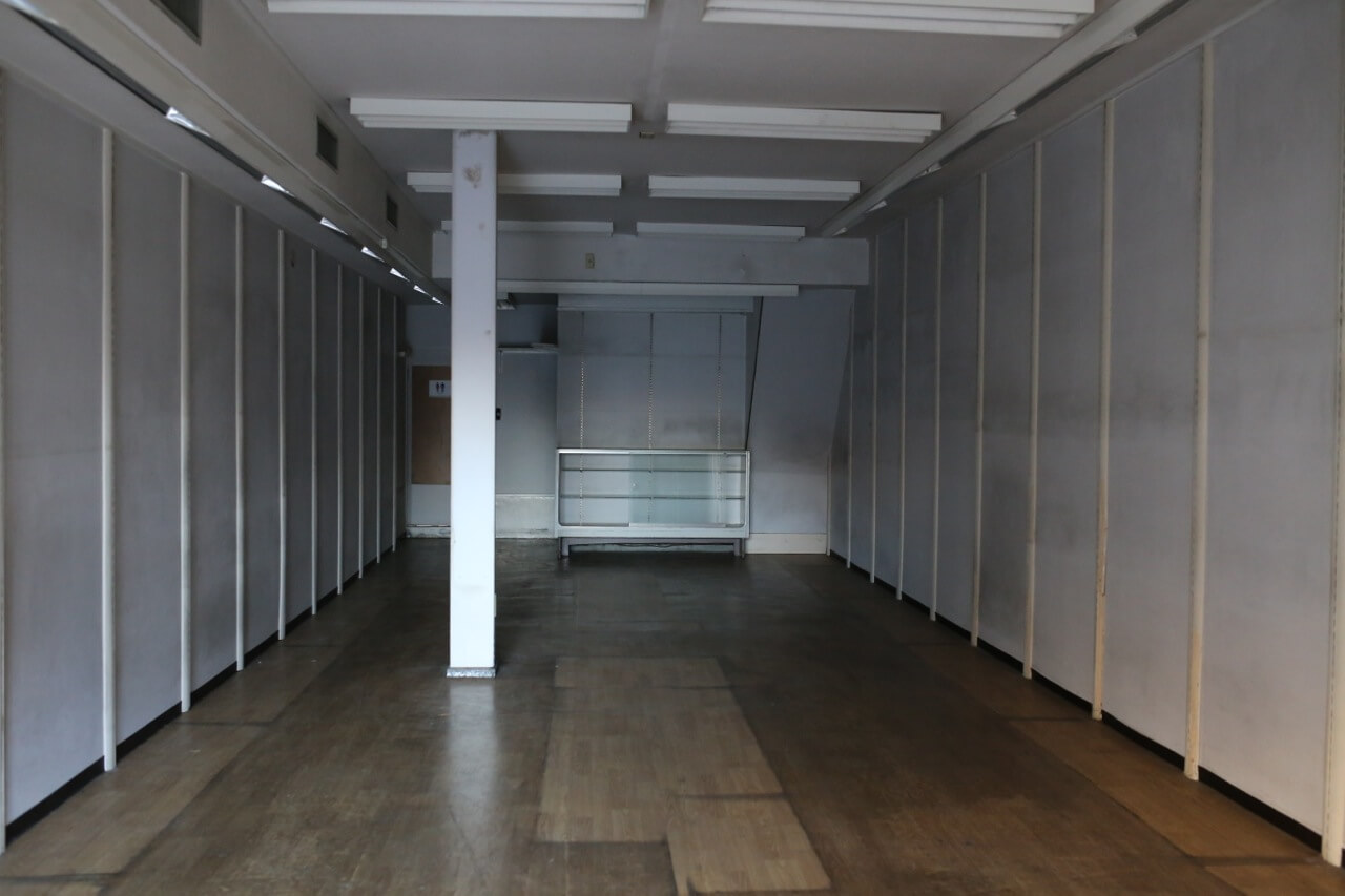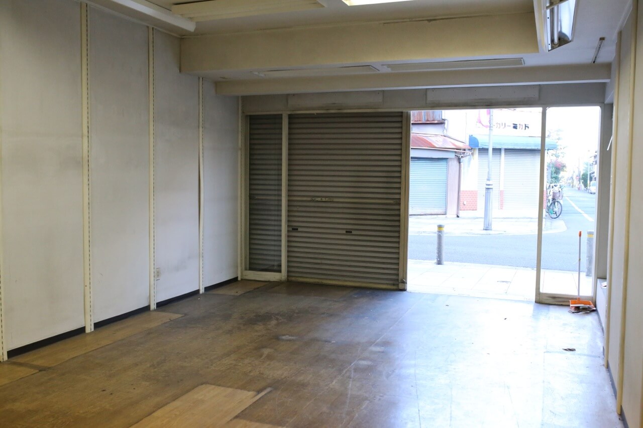 通りに面したシャッターをあげると、奥まで広い空間がまっすぐのびています。