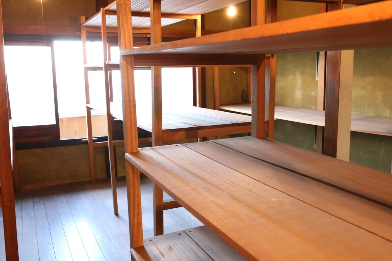 二階の棚を全て分解して、床張りの木材として使用するのも一つかもしれません。