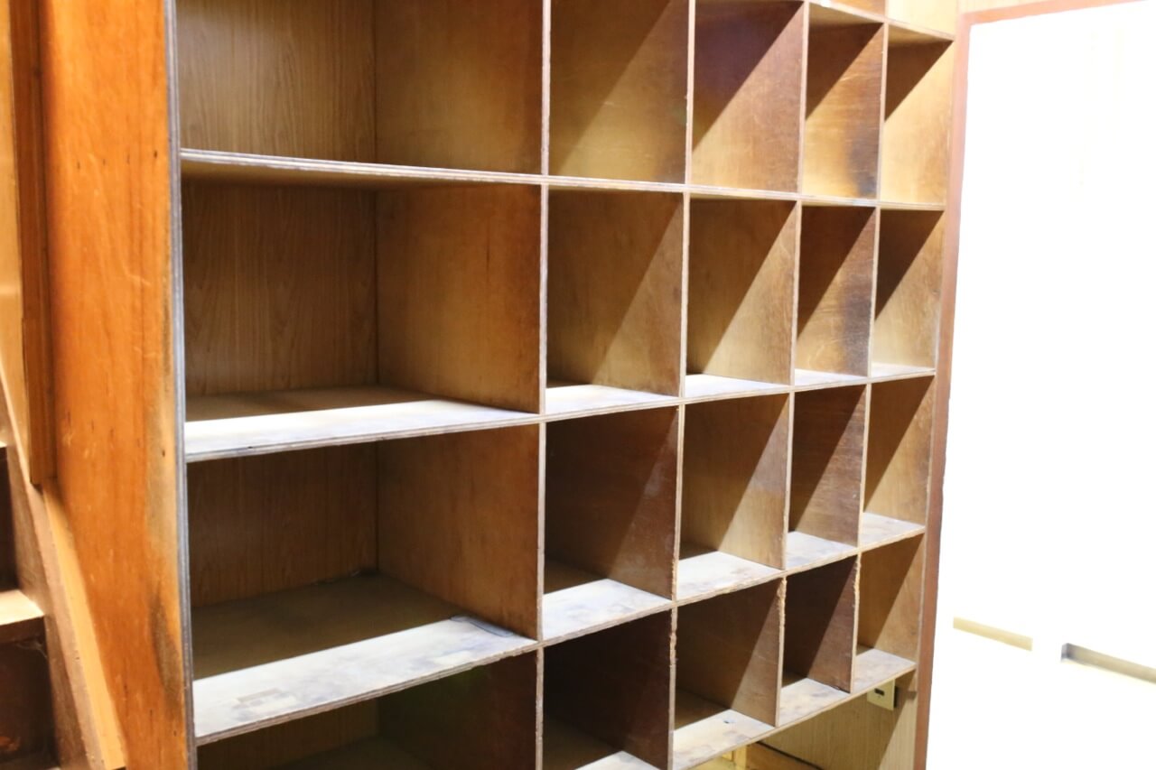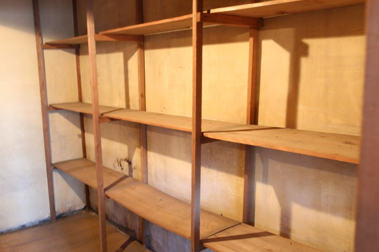 ここにも一つ倉庫のような部屋があり、この中にも棚がいくつか残っています。